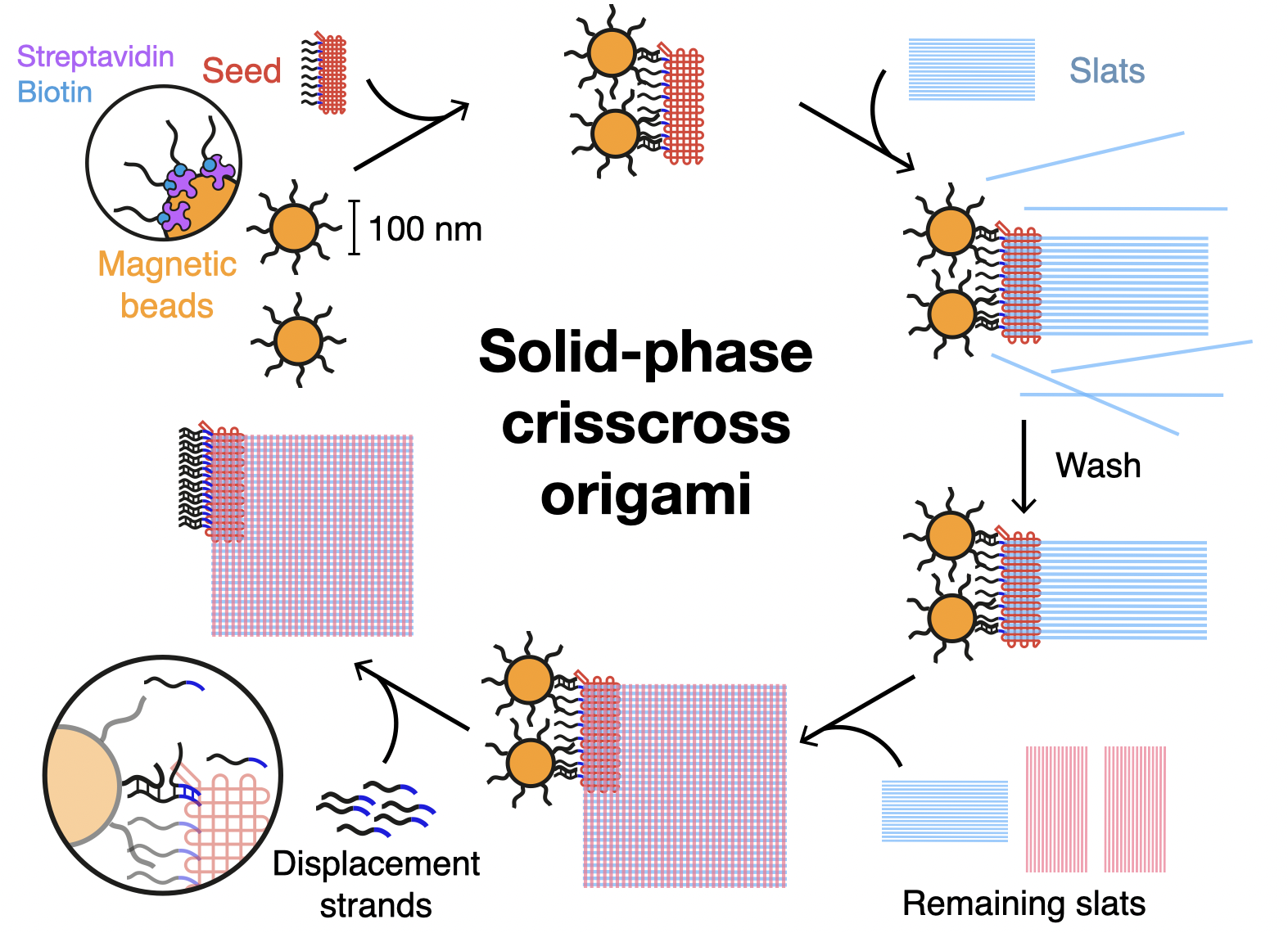 The solid-phase assembly workflow for assembling crisscross origami